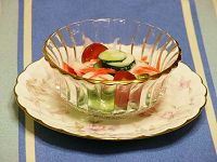 でも食べ物を装ってしまうと、全然違いは分かりません。 ガラス器が3つになってしまってからというもの、この器の出番が減っていたのですが、 これでまた元通り、楽しく使うことができそうです。 8個あるということは、あと4つ余裕があるということで、扱うにも気がラクですね^^。 この先、ますます出番が増えるかもしれません。