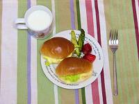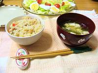 今日の写真はご飯とおみそしるが反対なんだ…。 写真をとった後に気づいたんだけど、 左利きの私には反対の方が合うんだよねー。 どーせならはしも反対にして写真をとったらいいと思っちゃった!