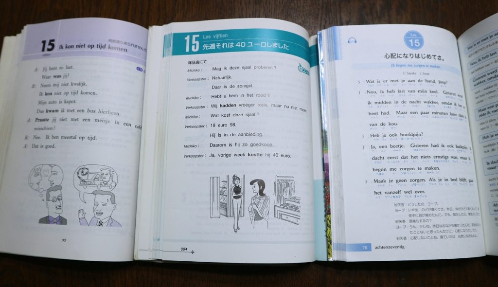 通常、新しく出た本のほうが古い本よりも平易であることが多いのですが、オランダ語に関しては、一番古いCDエクスプレスが一番平易。二番目のニューエクスプレスプラスも難しくはなかったです。この二つはDuolingoのオランダ語コースをセクション3まで終えた状態で楽に読めました。出てくる単語もDuolingoと割と被っていました。白水社は割とスタンダードというか、Duolingo同様、スタンダードな表現が多い気がします。