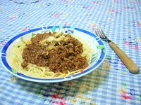 夕食にスパゲッティミートソースを作りました。 けっこう美味しそうにできました。