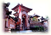 そう、本当に。どっちを向いても、そこは"バリ"だった。 西洋とは明らかに異なるセンスで飾り立てられた家々の門、 戸口の前の道の端に備えられたお供え物。 石には異形の顔が掘り込まれ、線香の香りがほのかに漂う。 一つ一つの家はそれぞれ違った佇まいであるにもかかわらず、 全体として見ると非常な統一感に包まれている。 しかもそれは、今まで見たこともない独特さであり、 スポット的に、ここがバリらしいとか、あそこがどうとか、 そんなものではなかった。 とにかく、右を向いても左を向いても、どっちにカメラを向けても、 そこはいかにもバリだった。