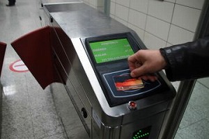 券売機でカードを買い、自動改札へ。 |