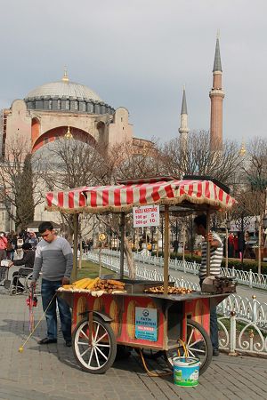 アヤ・ソフィア周辺は、屋台がたくさん。 焼き栗と焼きトウモロコシは トルコでも定番のよう。