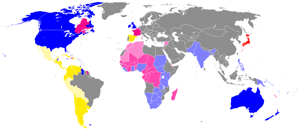 おお、南米とアフリカをほとんどカバー! 帝国主義の置き土産ですね。